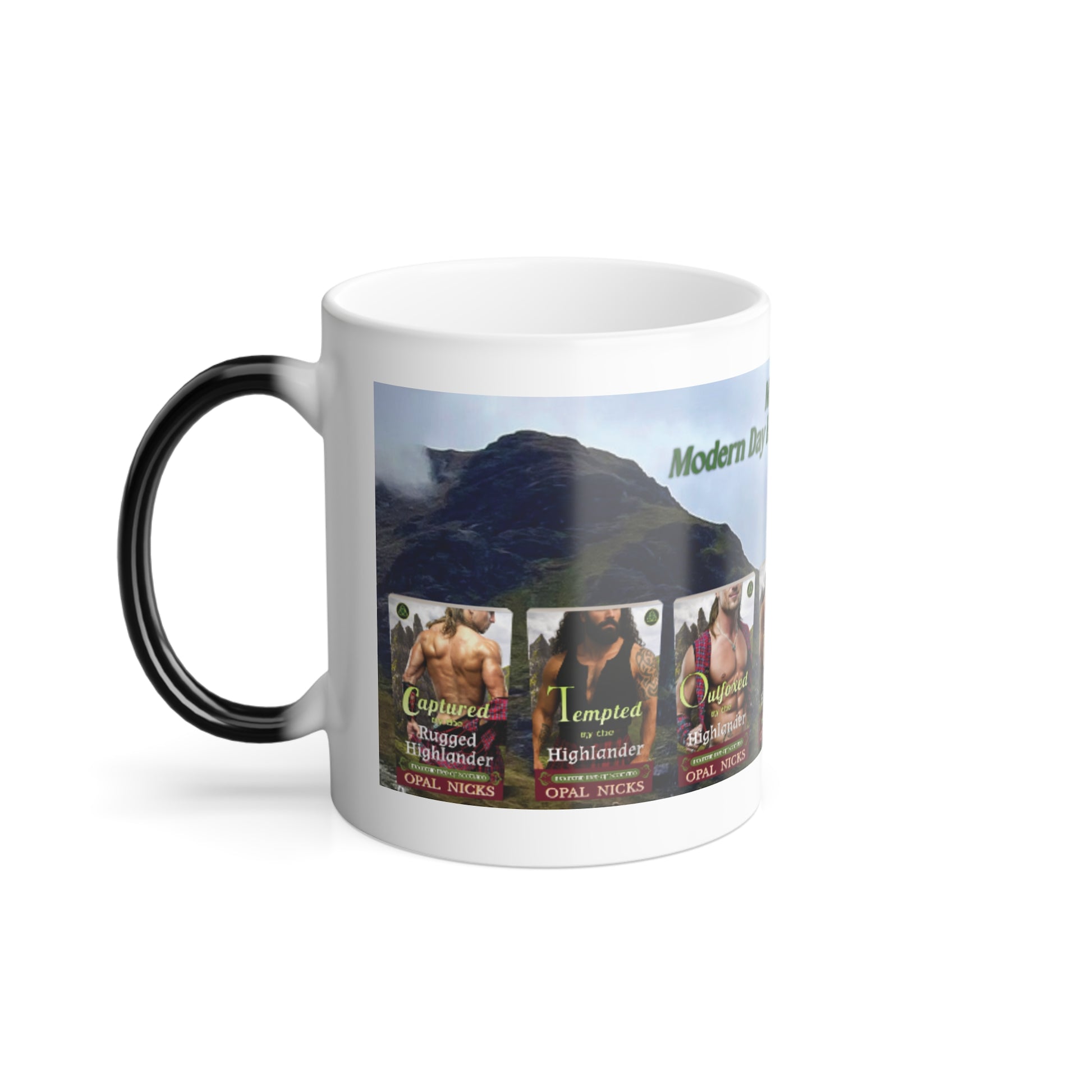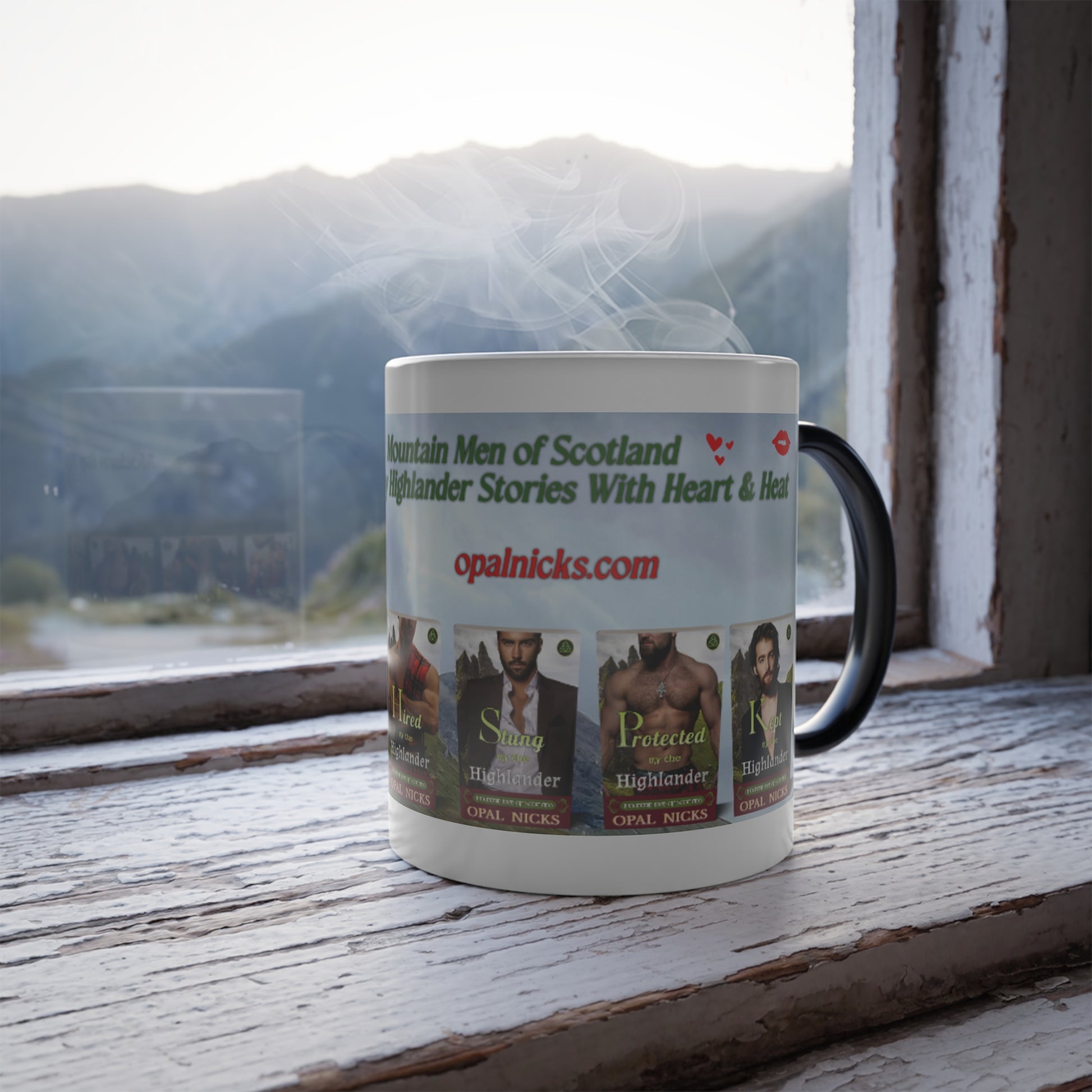 Start your morning with a little Highland magic! This heat-activated mug begins as a sleek solid black, but pour in your favorite hot drink and watch as the rugged Highlanders appear -- straight from the Mountain Men of Scotland series. Each hero comes to life on the mug, reminding you of the heart, heat, and happily-ever-afters waiting in their stories.