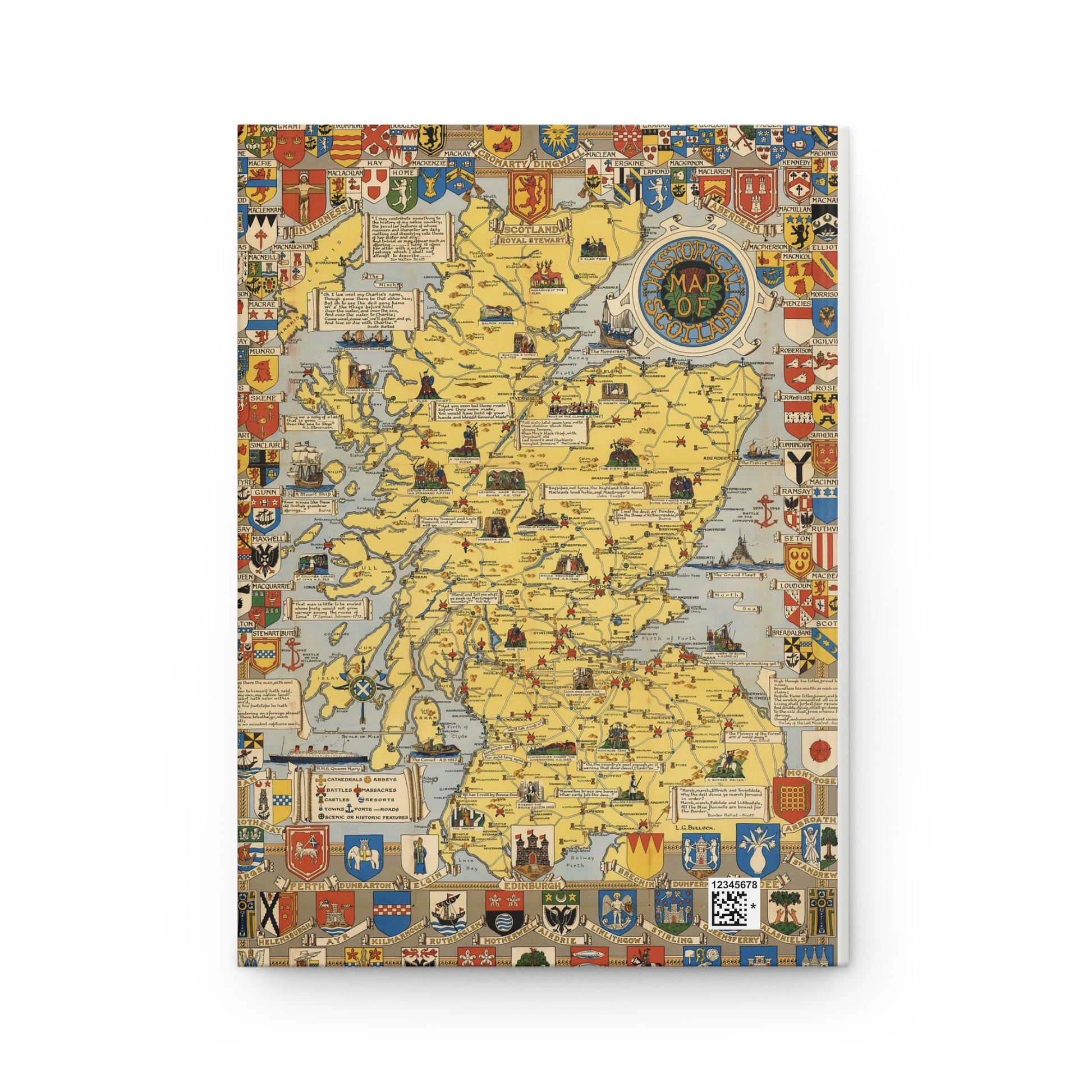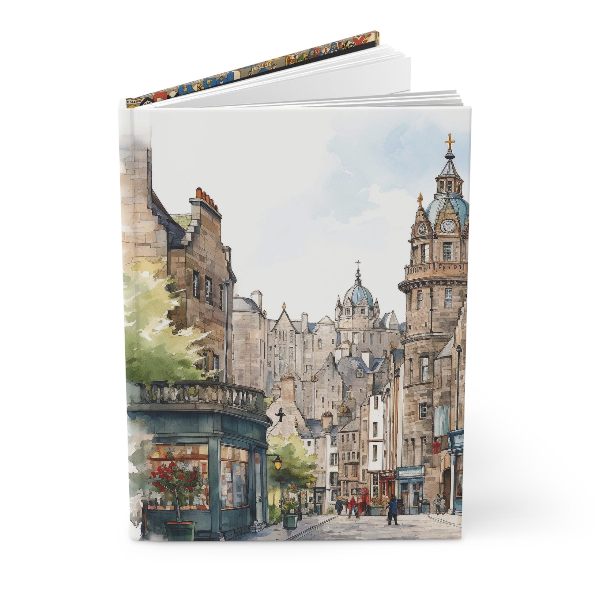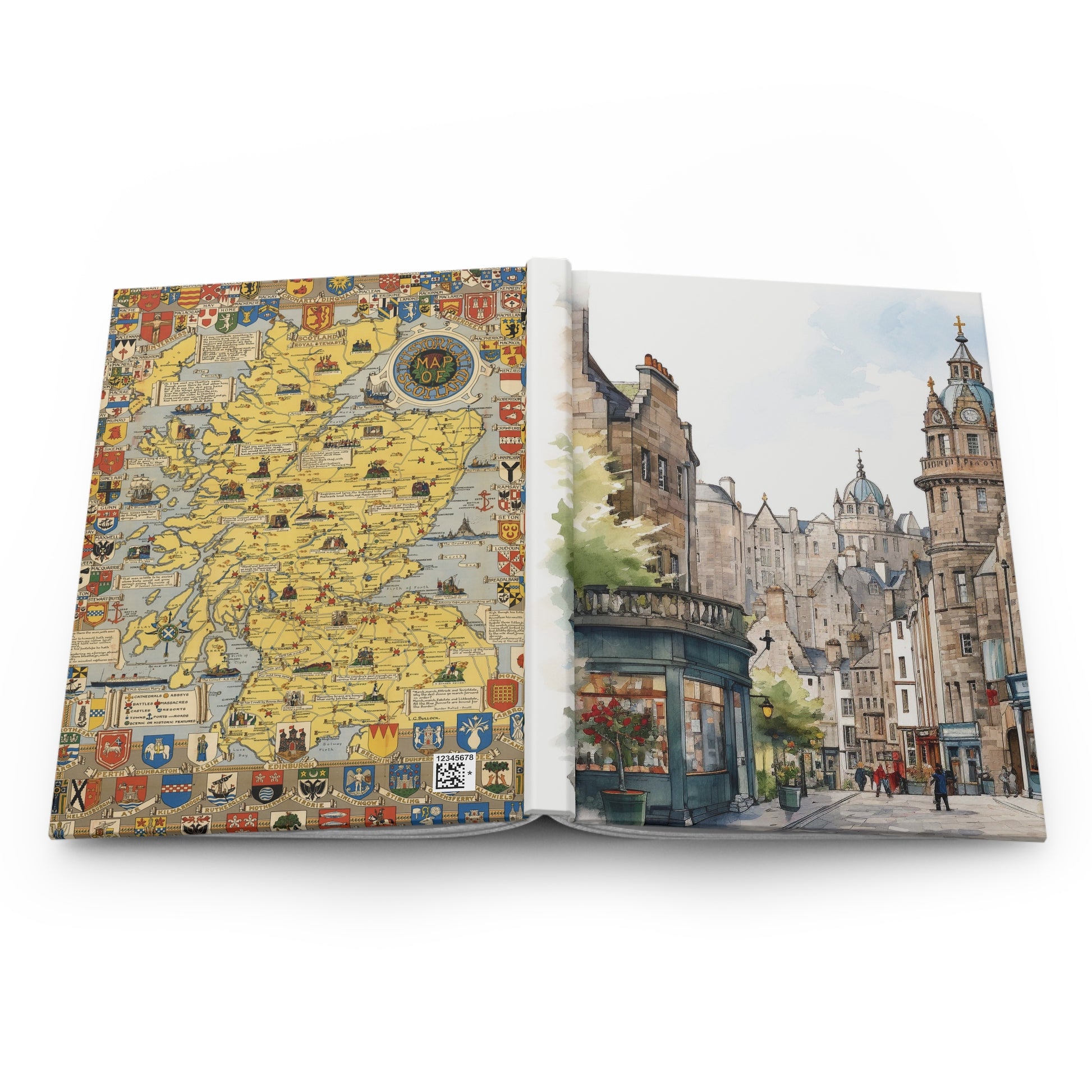 The front cover features a charming Edinburgh street scene—full of timeless architecture, bustling energy, and the kind of charm that lingers long after the last page is turned. On the back? An antique-style map of Scotland to remind you that home is never far, no matter where your ideas take you.